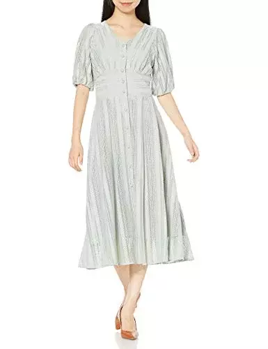 清楚系コーデに透け感をプラス ウエストマーク ストライプワンピース 膝丈 0446 Shlouf Mart