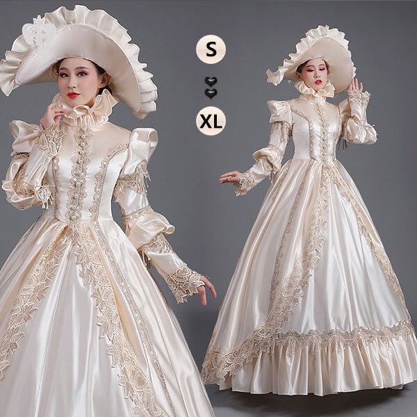 独創的 楽天市場 期間限定 マスクプレゼント中 貴族 コスチューム 舞台 衣装 中世貴族風 お姫様 パーティー 中世ファスナー演奏会 ロングドレス 大きいサイズ ワンピース プリンセスライン 刺繍 長袖 Aライン ベージュ S M L Xl 2xl 3xl Da732s1s1y7 代引不可